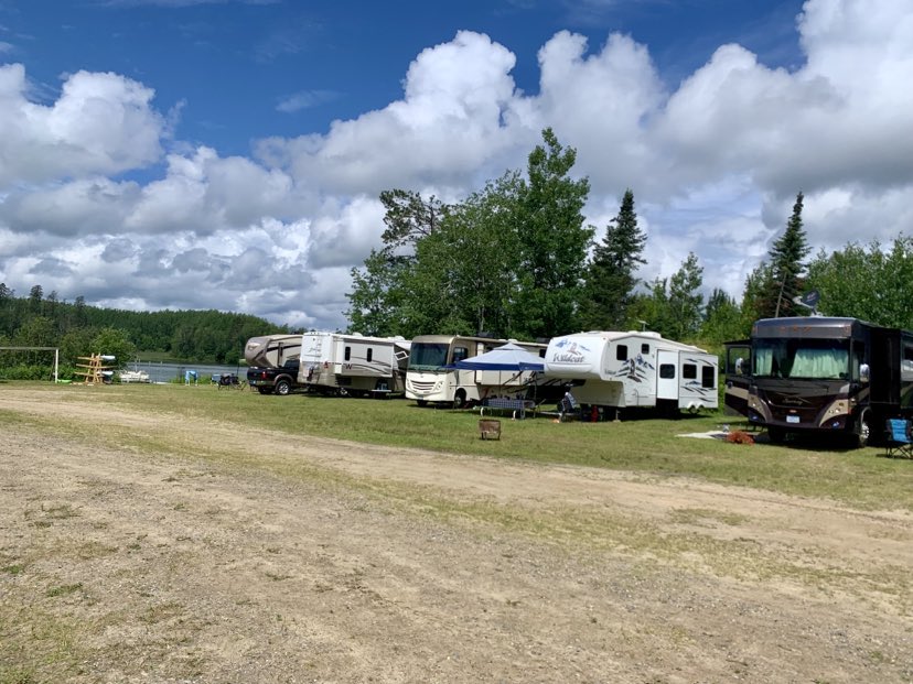 We have 12 campsites that have electrical and water hookups. Each site is approximately 30 x 50 feet. The 5 sites closest to the lake do not have sewer hookups, the other 7 sites have a sewer hookup. A dump station is available free of charge. There are clean showers and restroom facilities for your use.